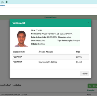 Desça a página e clique no nome do médico e aparecerá a sua especialidade registrada primeiramente no CRM (pediatria ou neurologia) e também sua área de atuação (neurologia pediátrica). Caso seja um médico mais antigo, será apresentada apenas a neurologia pediátrica e não terá uma especialidade primária registrada. Seguem os prints dos nossos registros no site para vocês verem como aparece: