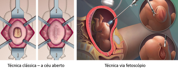 A cirurgia fetal pode ser realizada por meio de duas técnicas cirúrgicas, pode ser feita uma cirurgia a "céu aberto", neste caso o útero da mãe é exposto e aberto para que cirurgião alcance o feto e faça o fechamento da mielomeningocele. Já na técnica laparoscópica ou fetoscópica uma câmera de vídeo e outros instrumentos são inseridos no útero fechado e a cirurgia ocorre sem a abertura do útero. Ainda não há estudos para comparar qual técnica é melhor. Sabe - se que na técnica laparoscópica há maior chance de parto prematuro, porém esse risco também é presente na técnica a aberta.